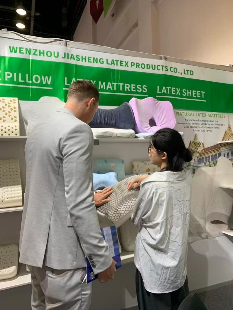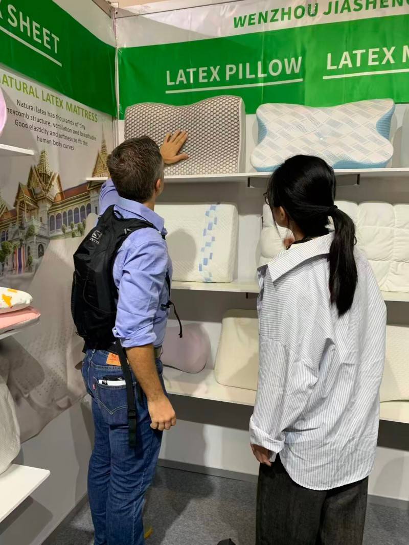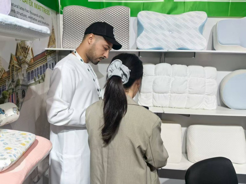 Lors de cette exposition sur le sommeil à Dubaï, nous sommes honorés de montrer nos oreillers axés sur le sommeil aux visiteurs du monde entier. Nous nous engageons à présenter deux des oreillers les plus vendus sur le marché : leoreiller en latex naturelet le matériau intelligent moderneoreiller en mousse à mémoire de forme. Les propriétés de rebond rapide et anti-allergiques du latex sont très appréciées des amateurs de latex. Pendant ce temps, l’ajustement ultime de la mousse à mémoire de forme peut fournir un sommeil profond. Notre communication approfondie avec les clients sur place nous a fait ressentir leur recherche d'oreillers. Nous croyons fermement que proposer des choix personnalisés pour différentes habitudes de sommeil est la clé d'un sommeil de qualité.